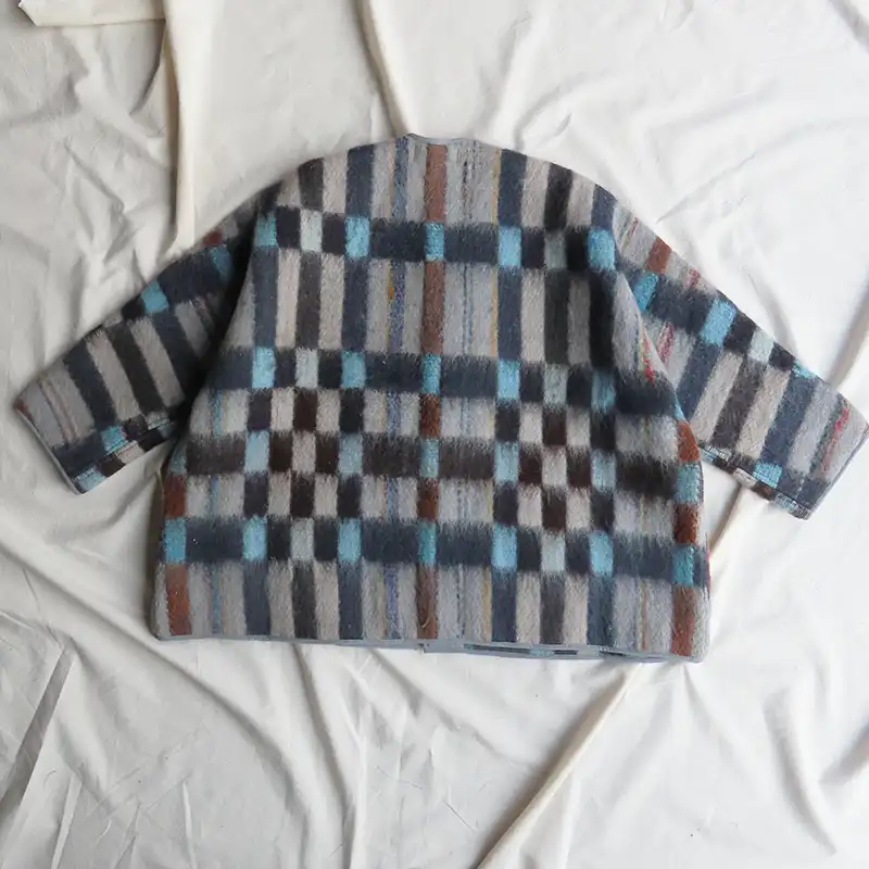 The craftsmanship of our blanket jackets is a proof to the love and skill of our artisans in Rudrapur, India. Each jacket is meticulously crafted from handwoven wool blankets. Ensuring that no two pieces are the same. These unique blankets not only highlights the individuality of each jacket but also underlines our commitment to sustainability.
