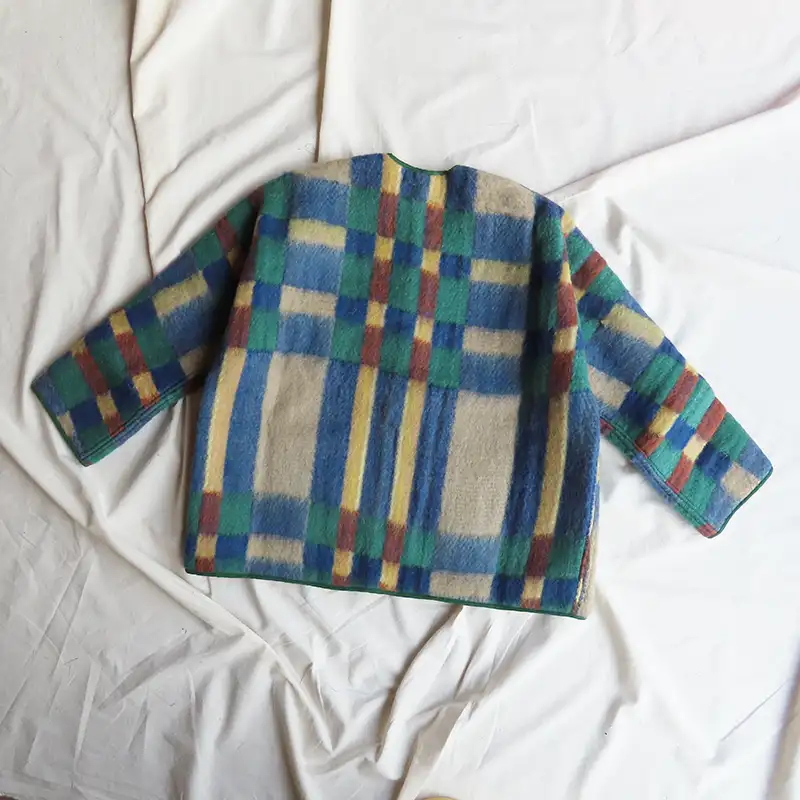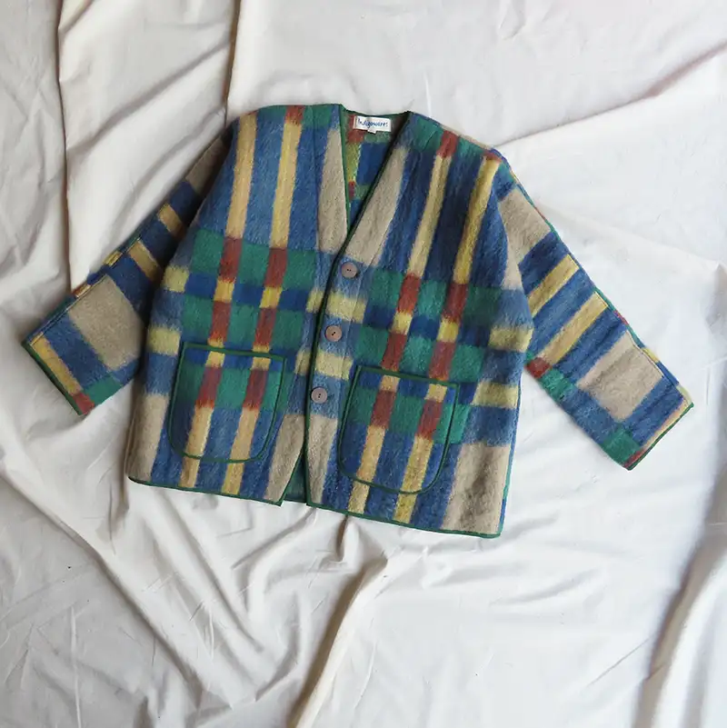 The craftsmanship of our blanket jackets is a proof to the love and skill of our artisans in Rudrapur, India. Each jacket is meticulously crafted from handwoven wool blankets. Ensuring that no two pieces are the same. These unique blankets not only highlights the individuality of each jacket but also underlines our commitment to sustainability.