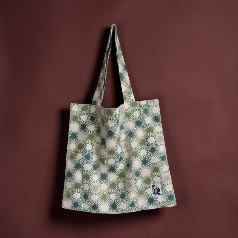 Thanks to its sturdy cotton weave, the canvas feels beautifully textured and grounded. The hand-applied block print adds character, making each canvas cloth bag slightly different from the next. These subtle differences reflect the skill of the maker and give each bag a unique, earthy charm. So while the design may repeat, the final look never feels mass-produced.