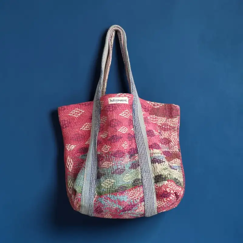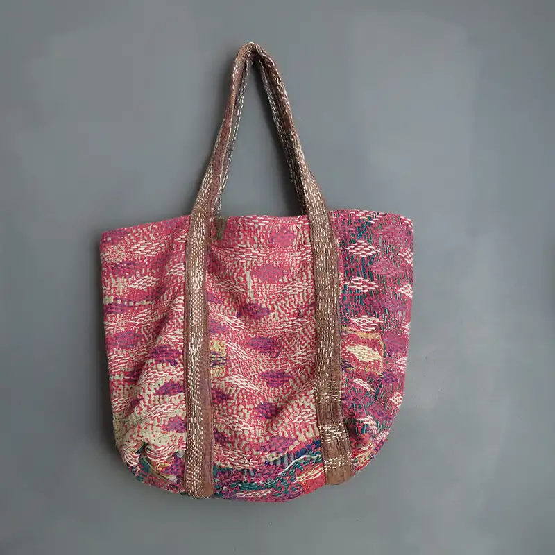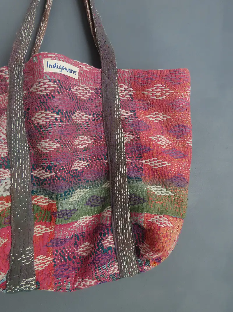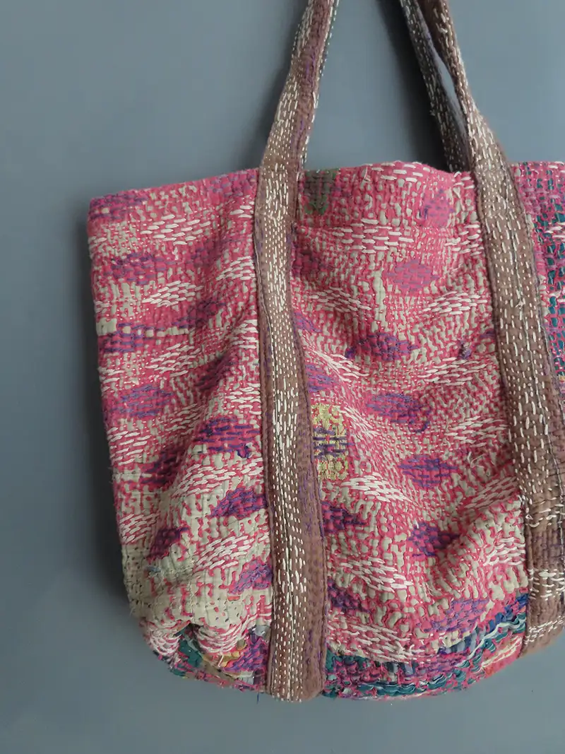 Vintage Cotton Tote Bag with Kantha Stitch Detailing
