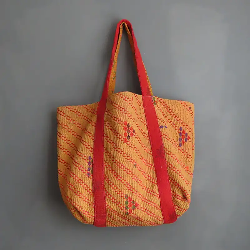 Vintage Cotton Tote Bag with Kantha Stitch Detailing