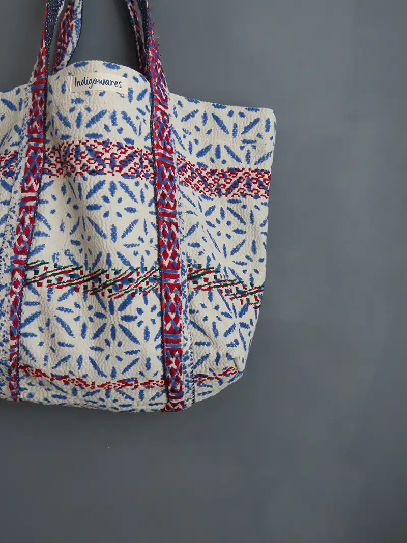Cotton Tote Bag – Kantha Fabric – Lisbon Blue
