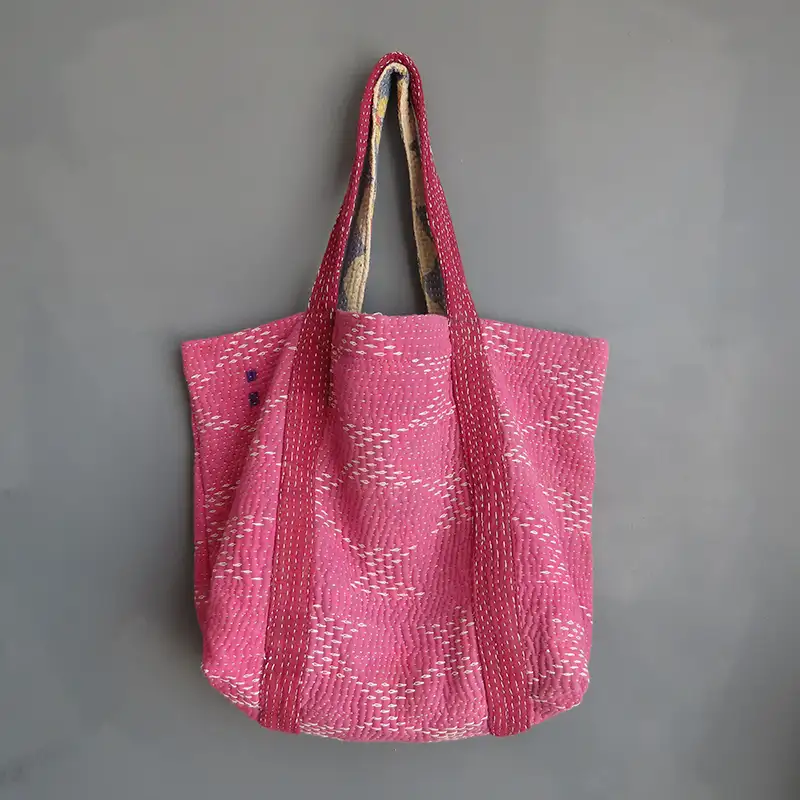 Vintage Cotton Tote Bag with Kantha Stitch Detailing