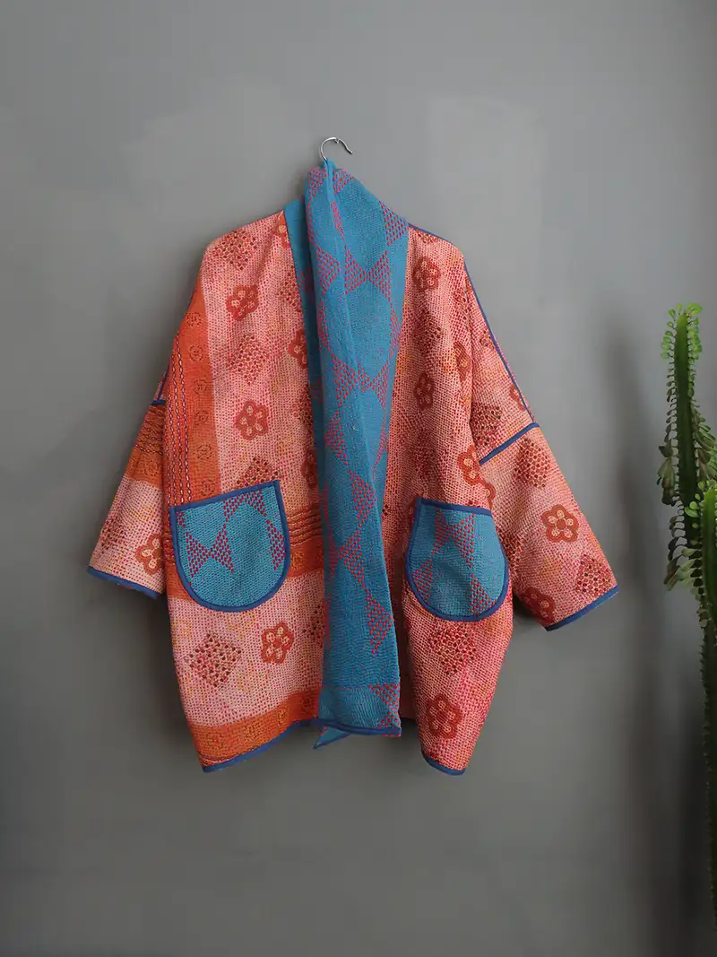 • One-of-a-Kind – Made from vintage Indian kantha quilts. No two jackets are the same.