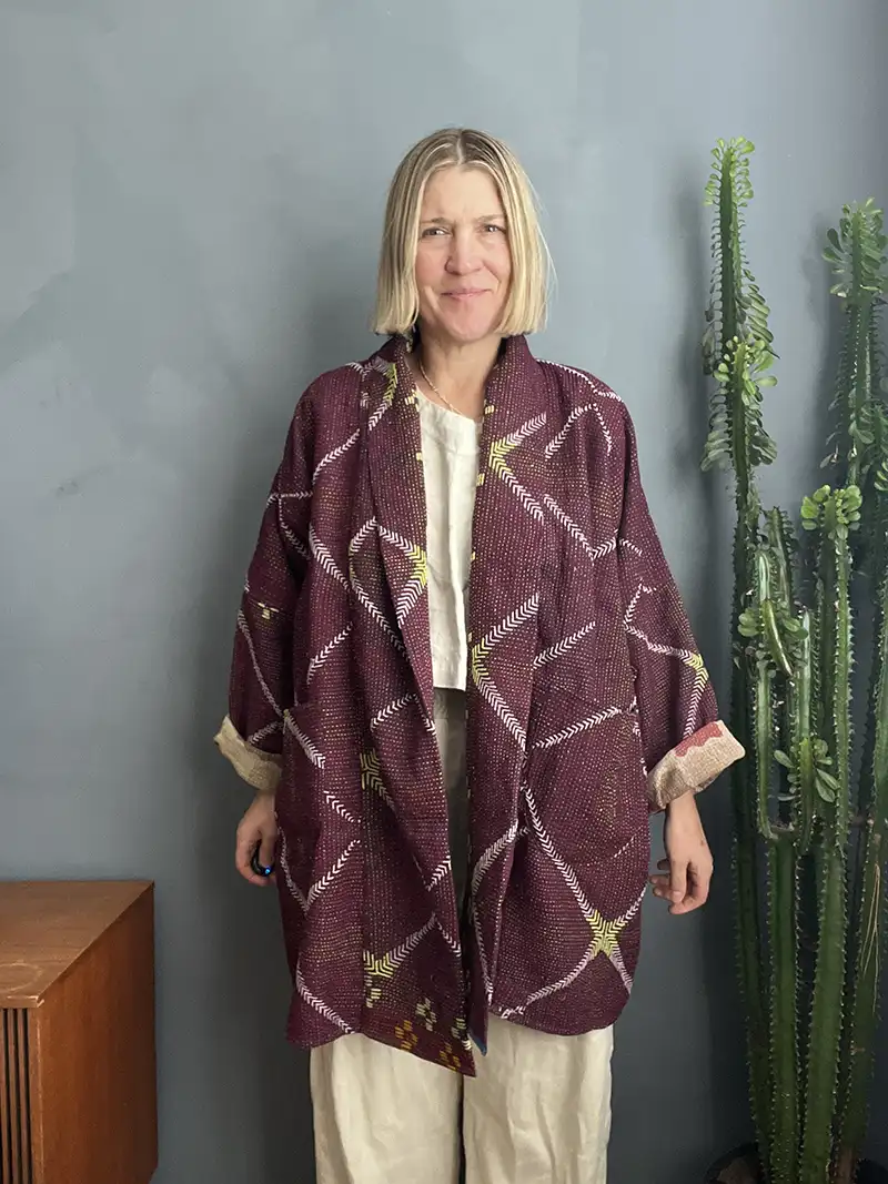 • One-of-a-Kind – Made from vintage Indian kantha quilts. No two jackets are the same.