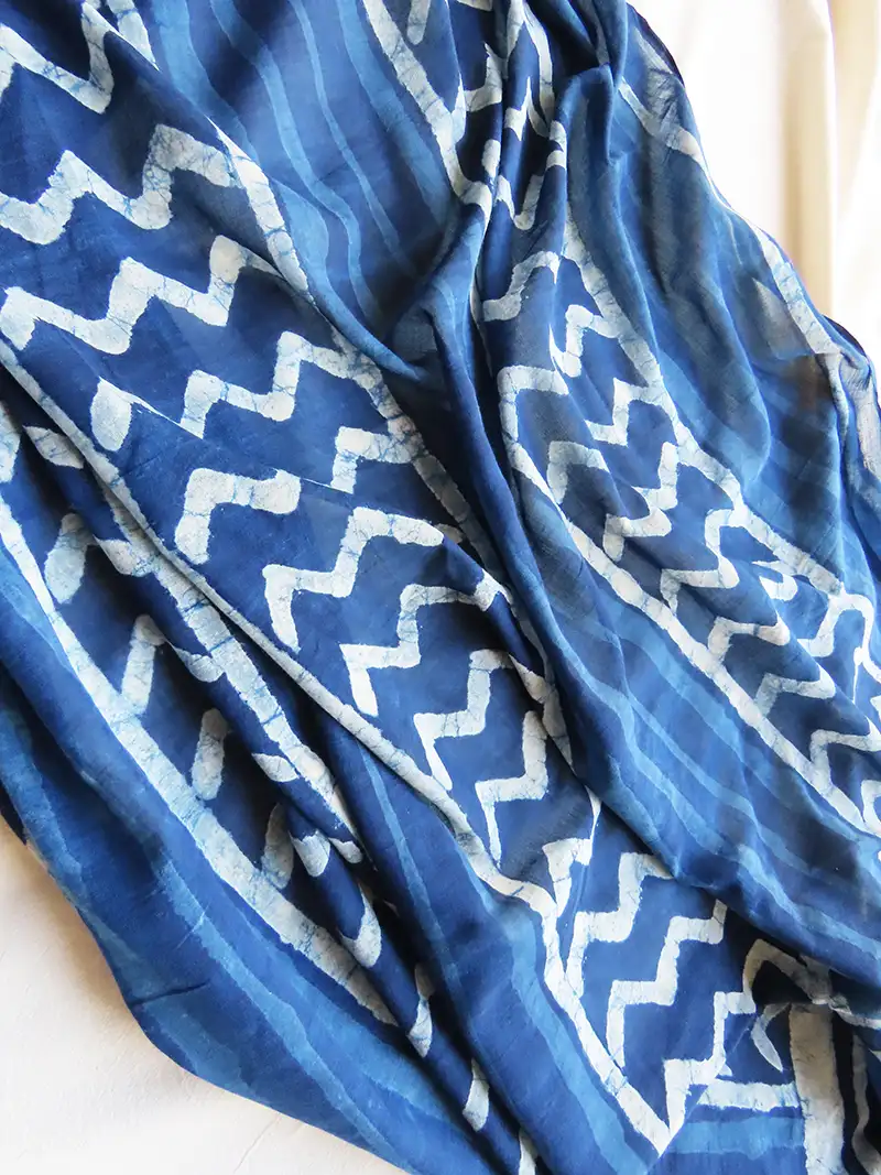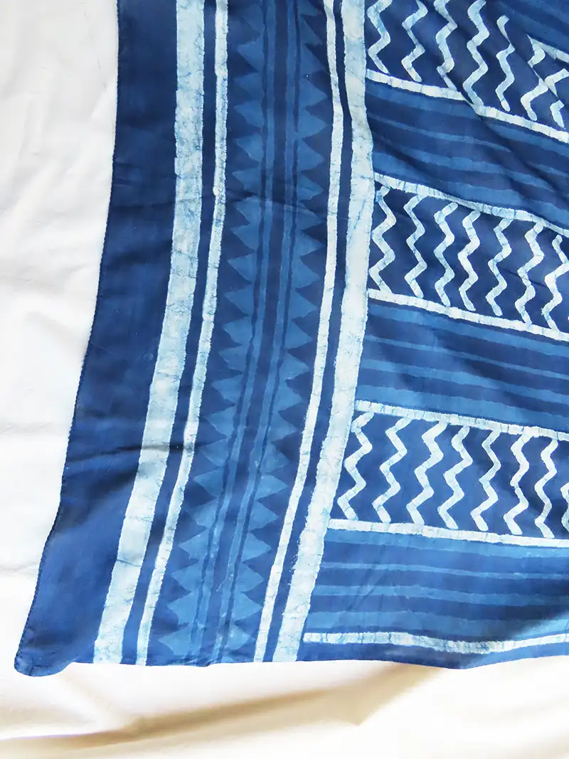 Indigo Dyed Cotton Scarf – Dabu Mud Print – Big Print