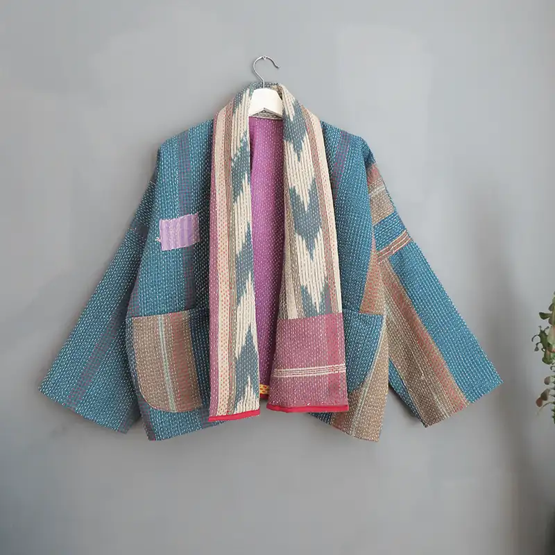 • One-of-a-Kind – Made from vintage Indian kantha quilts. No two jackets are the same.