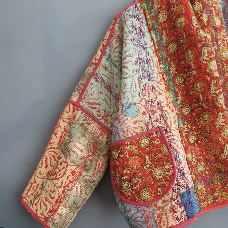 • One-of-a-Kind – Made from vintage Indian kantha quilts. No two jackets are the same.