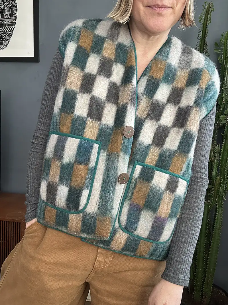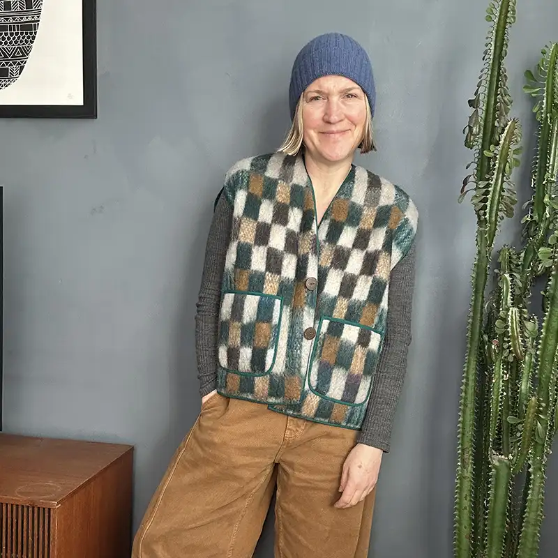 Made from a durable, slightly felted, handwoven 2-ply wool. This wool waistcoat is designed for ease and versatility. Whether you’re heading out for a morning dog walk or a cosy camping trip this is the piece you’ll reach for again and again.